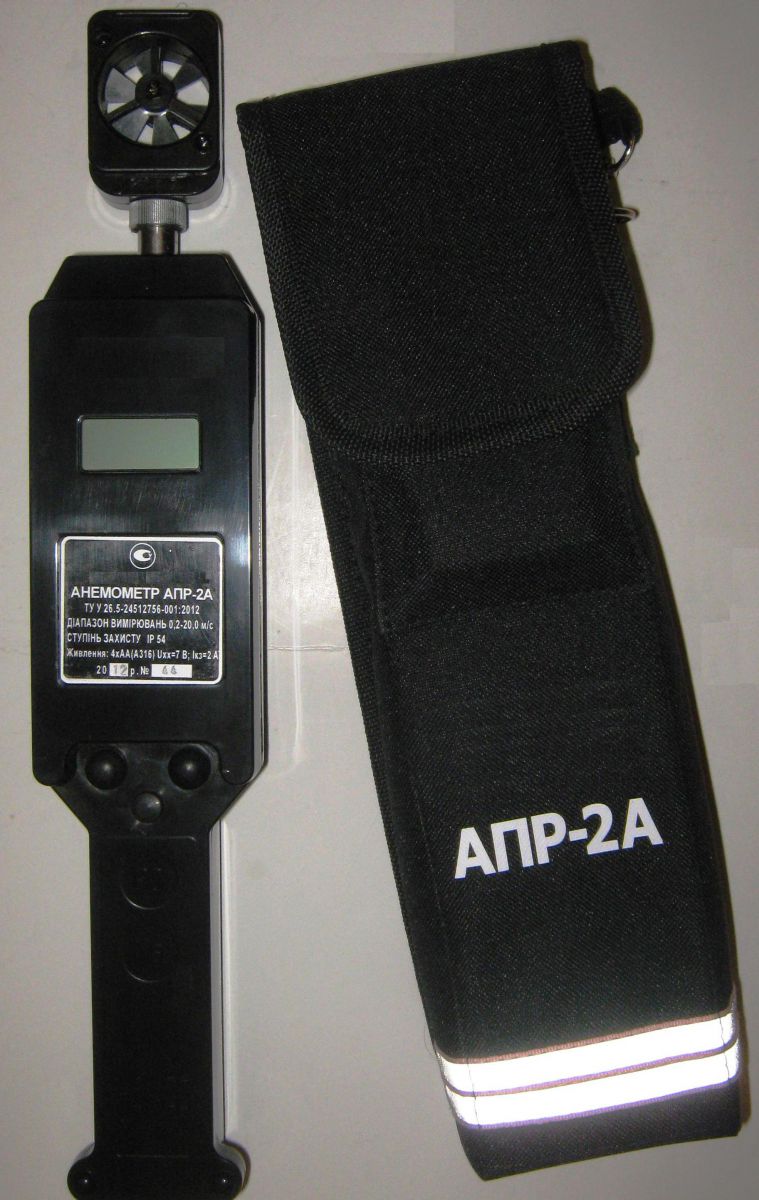 Анемометр АПР-2А призначений для вимірювання середньої швидкості повітряного потоку в шахтах всіх категорій. Можливе використання для укомплектування лабораторій з охорони праці підприємств різних галузей промисловості.